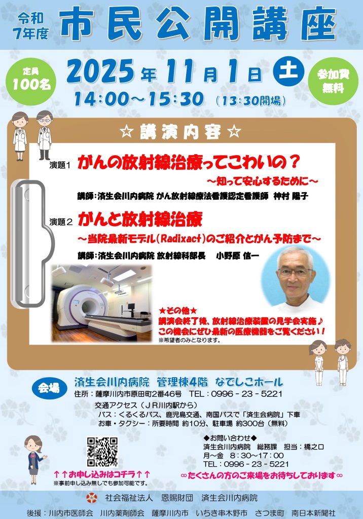 今年度は放射線治療をテーマに、病院管理棟4階なでしこホールにて講演を行います。